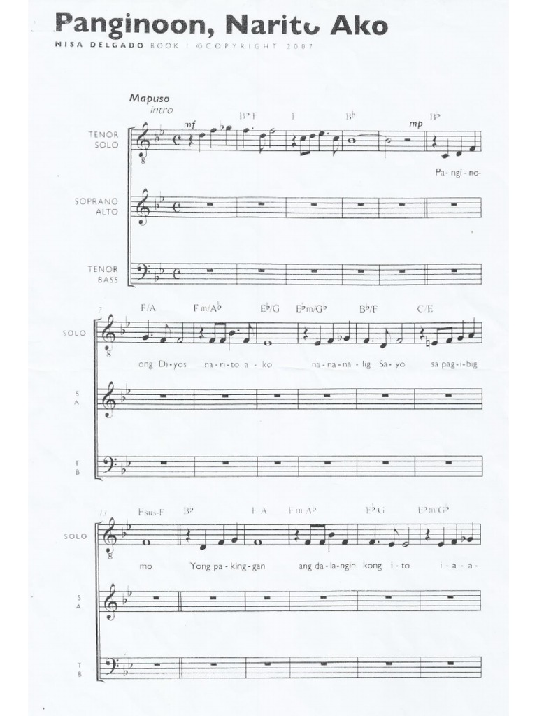 Share to Twitter Share to Facebook Share to Pinterest. Eb F Bb Am Ab Gb C Cm Fm Gm Db Bbm Ebm Dm Chords for Panginoon Narito Ako MISA DELGADO BOOK I - SAMPLER with song key BPM capo transposer play along with guitar piano ukulele mandolin. The warm appreciation and acceptance of the people to this new compilation of mass songs has motivated Lester to continue writing until he finished the five books of the Filipino series.