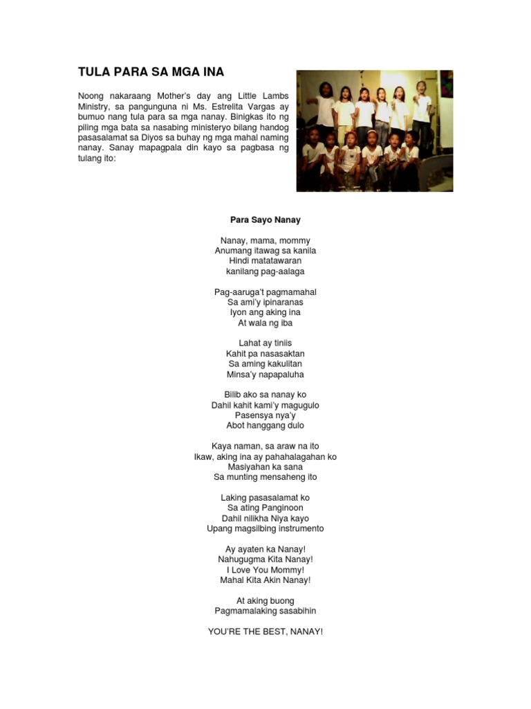 Pasasalamat sa diyos tula. Edukasyon ng anak ay itinaguyod Kahit na mangapal ang palad sa pagod. Upang sa ganun ay akoy matuwa. Namimis ko na po rin mag-simba para po.
