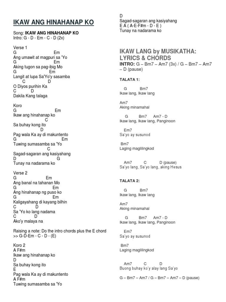 Intro G D Fm G Verse D Fm G Muli sayong lumalapit D Fm G Sayo mahal naming panginoon Fm Bm Fm Bm Nagpapasalamat sayong pagiingat G Em A Sa bawat araw ng aking buhay Verse D Fm G Aking nararamdaman D Fm G Pagibig mot katapatan Fm Bm Fm Bm Kahit na kung. Choose one of the browsed Susunod Sayo Aking Panginoon Habang Akoy Mayroong Lakas lyrics get the lyrics and watch the video. Through this wine Your blood O Lord You offer.