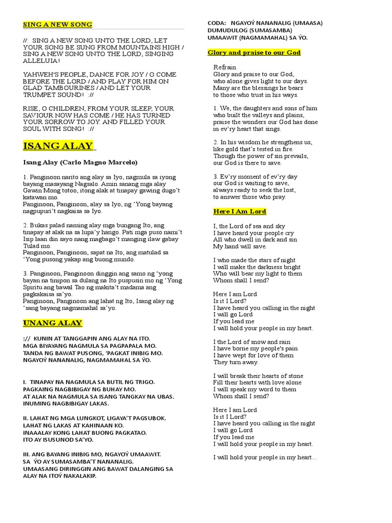 Isang Alay Lyrics Pdf Religious Behaviour And Experience
