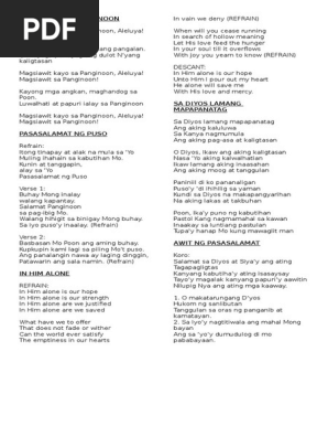 1 Purihin mo ang Panginoon Oh kaluluwa ko. Tanging Ikaw Oh Dios. Purihin ninyo siya ayon sa kaniyang marilag na kadakilaan.