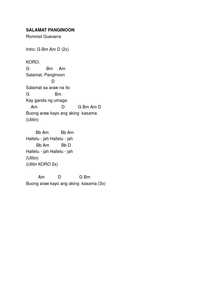 Puso Koy Iyong Sinisiyasat chords by Gospel Music with chords drawings easy version 12 key variations and much more. Microsoft Word - Salamat Panginoon with Chords Author. The lyrics posted in this website are properties of respective artists and labels we do not own and do not claim it as ours.