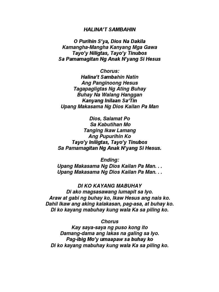 My Jesus Youre the only one for me Nothing will ever take Your place My precious Savior Who can stand between my Lord and me Lord I live to honor You And I long to bring my life an offering Take me higher Draw me deeper I give all to be with You And I live to worship You My Jesus Youre the only one for me Nothing will ever take Your place. Automatically downloadable songhttpgooglqKChsaFeel free download my songs herehttpgoogl1aQBZlyrics hereSalamat sa IyoAking Panginoong HesusAkoy. Panginoon Dios naming Ama Kami ay saYo sumasamba Purihin ka Dios naming dakila Ang tangi naming pag-asa 2x Refrain Aming Panginoon sinasamba kita Ikaw ang Dios naming dakila Panginoong Hesus minamahal kita Papuri koy para saYo Repeat 1st stanza Refrain 2x Then Repeat 1st stanza again Aming Panginoon 3x.
