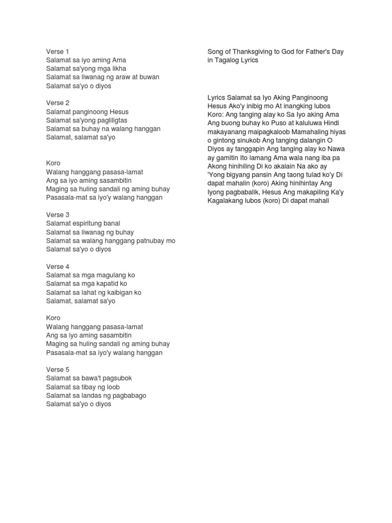 About Press Copyright Contact us Creators Advertise Developers Terms Privacy Policy Safety How YouTube works Test new features Press Copyright Contact us Creators. Ang tanging dalangin O Diyos ay tanggapin. Translation of Salamat Panginoon by Pinoy Worship Songs Filipino and Tagalog Worship Songs Christian Songs of the Philippines from FilipinoTagalog to English.