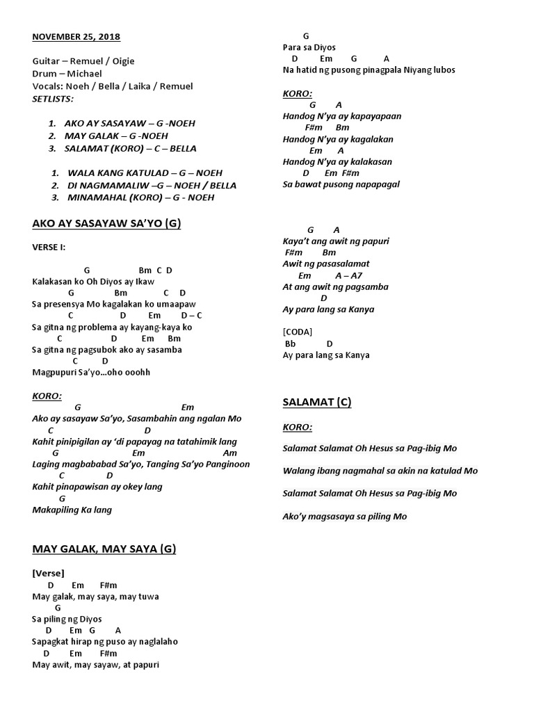 Alay sayo alay sayo Chorus. Intro G C G C Verse 1 G C Dakila Ka Panginoon dito sa puso ko G C Hindi Ka nagbabago Ikaw ay totoo C BG C BG Sa bawat tawag ko tinutugon Mo ako Am C D Akoy walang takot Ikaw ang kasama ko C D Em G 2x Chorus C D Puso koy nananabik Em G Sa banal Mong pag-ibig C D Yakap Mong walang maliw Em D Nadarama bawat saglit C D Hindi mapapantayan Em G Ang. Intro G Em G Em Verse G Em Kagalakan Oh Diyos ay Ikaw G Em Sa presensya Moy kalakasan koy umaapaw Pre-Chorus C D G - DF Em Kahit na may problema ay kayang-kaya ko C D Am Bm C D Sa gitna ng pagsubok ako ay sasamba magpupuri sa Iyo Chorus G Em C Ako ay sasayaw sa Iyo Sasambahin ang ngalan Mo G Am D G Kahit.